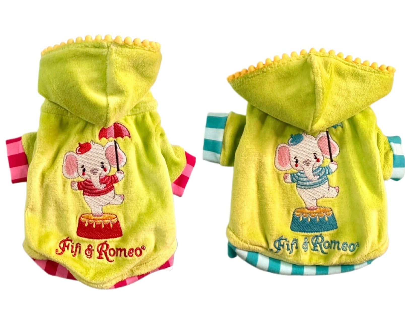即納【Fifi&Romeo】ゾウさんベロアフードポンポン ピンク/アクア