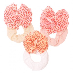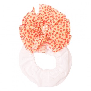 リボンが刺繍されたコットンレースにイチゴ柄のチュールをお花に見立ててお作りいたしました。