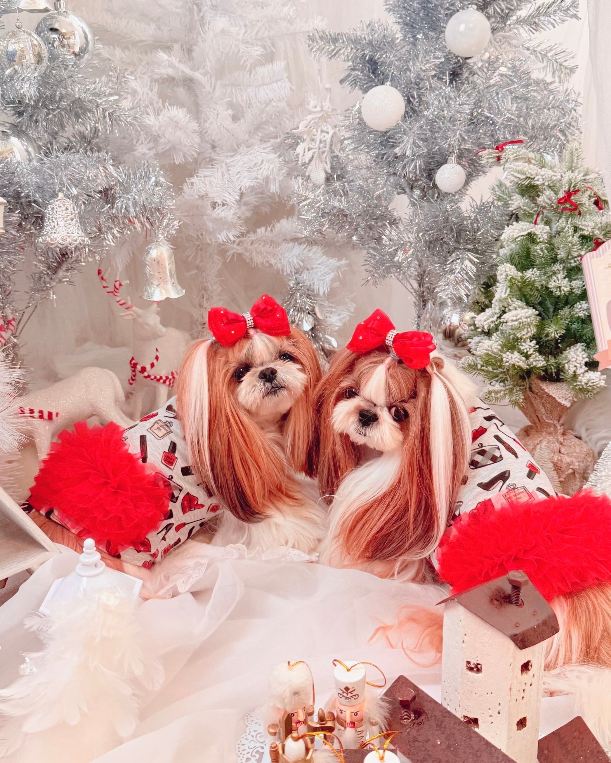 ウエストからヒップにかけてついている華やかレッドのチュールがとてもキュート