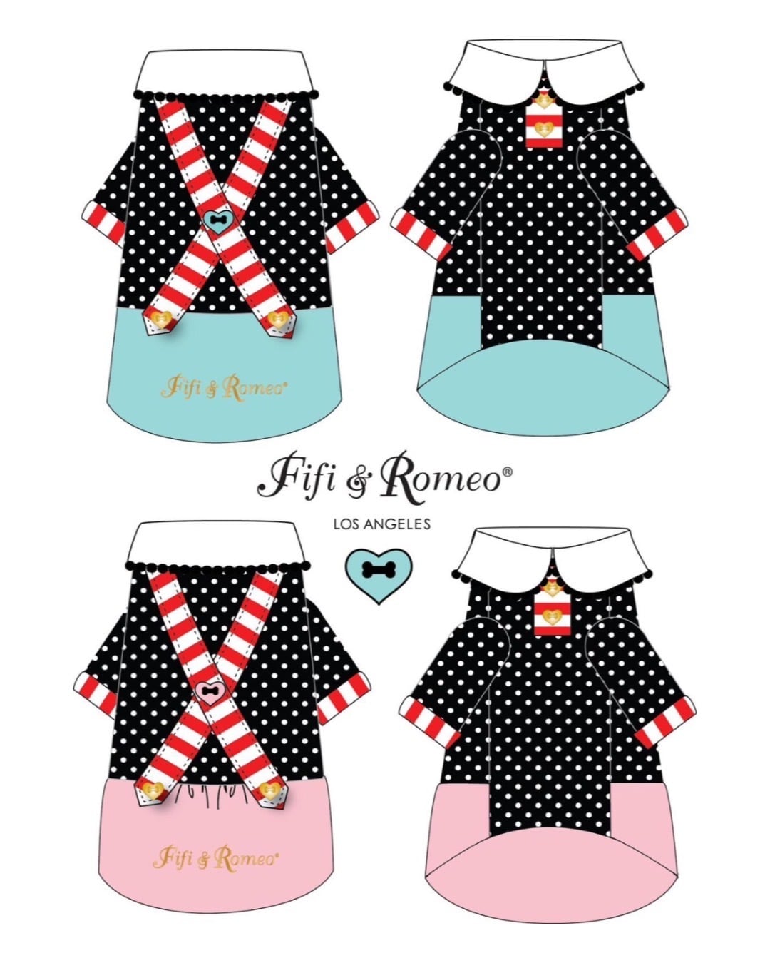 数量限定・即納【Fifi&Romeo】ボーダーサスペンダーTシャツ ピンク/アクア